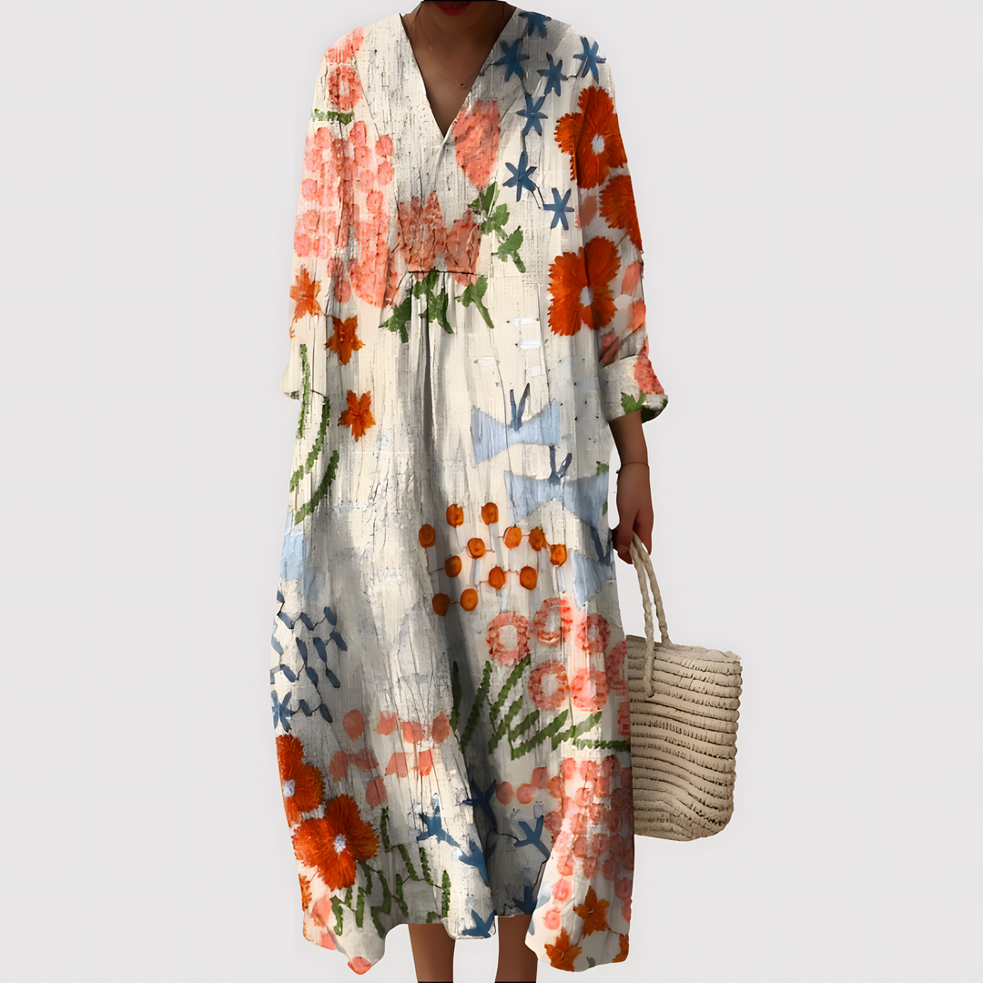 Norevana | Vestido Largo Estilo Maxi para Mujer en Algodón y Lino con Cuello Camisero