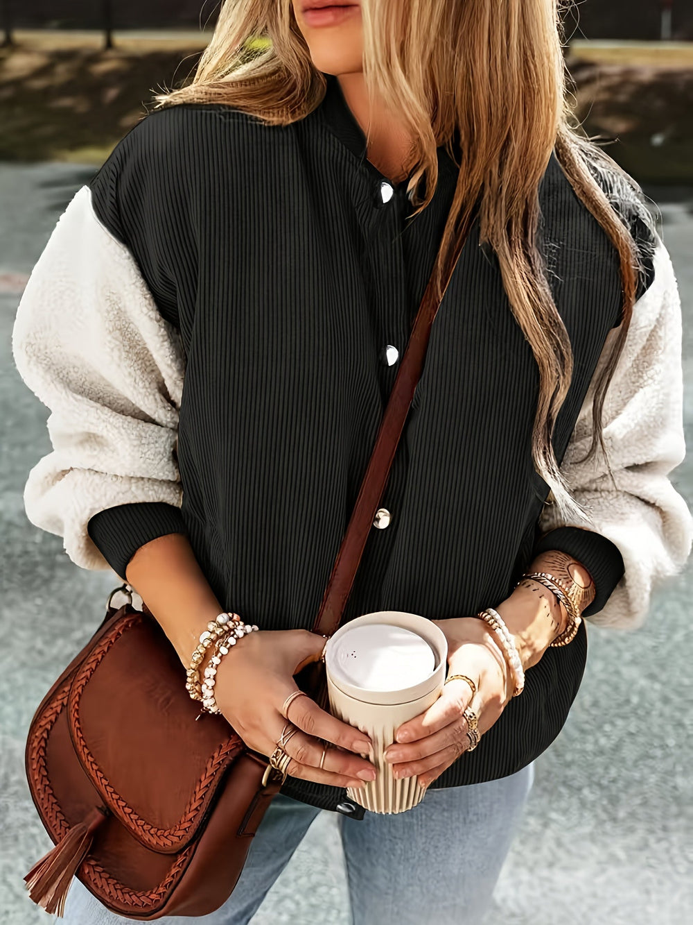 Briela™ Chaqueta Elegante de Otoño con Cuello Beisbolero y Bloques de Color