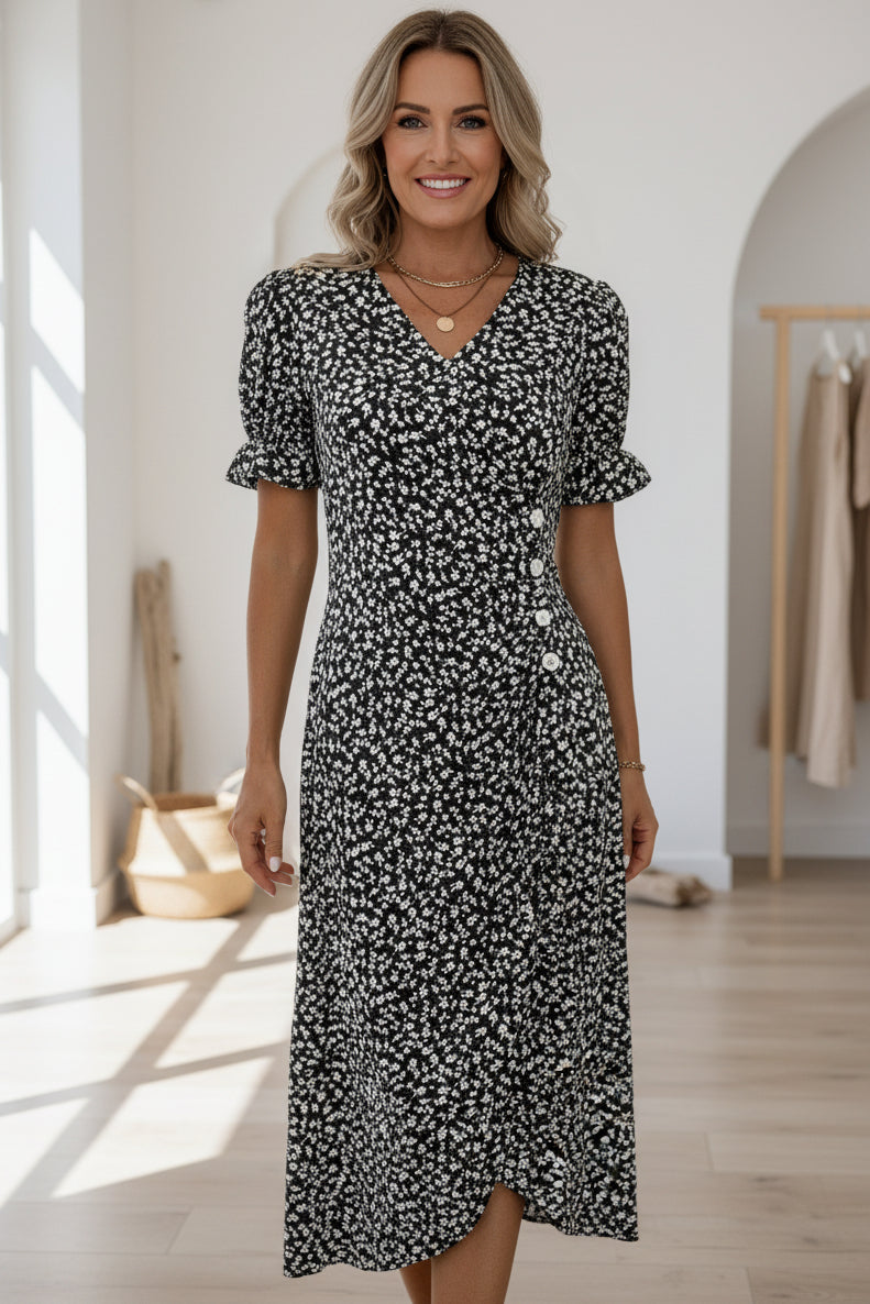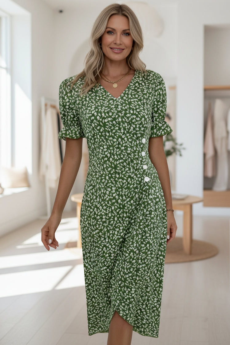 The Trixie Floral V-Neck Dress blends timeless style with a hint of romance, perfect for any occasion. Comfortable and charming, it's ideal for garden parties, casual outings, or special events. Step into sophistication with Trixie and make every moment memorable.
