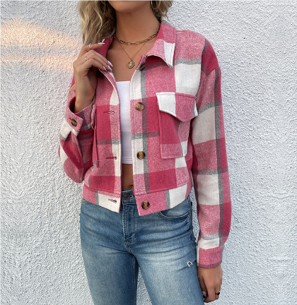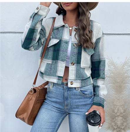 Jayden | Stijlvolle Croppped Geruite Jas