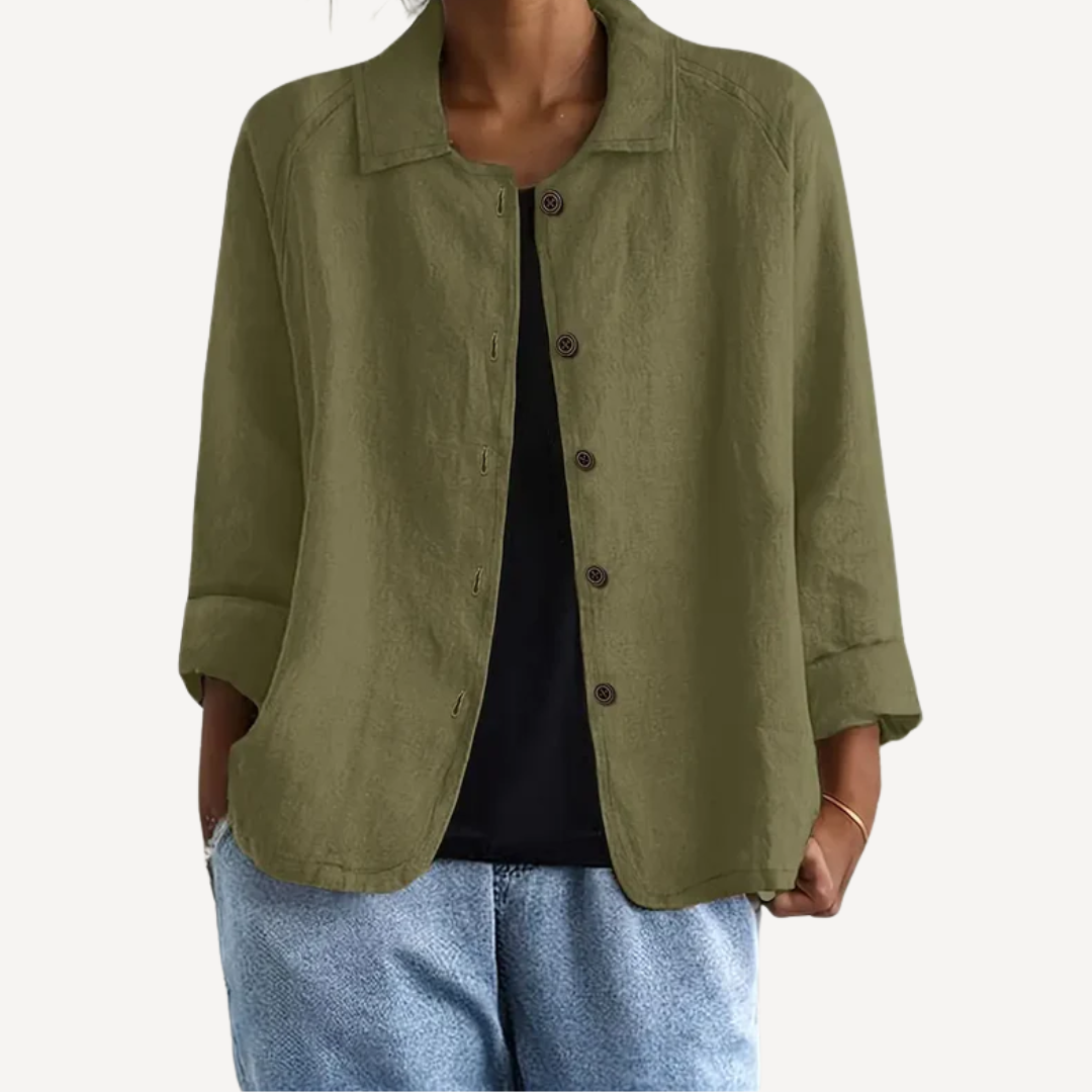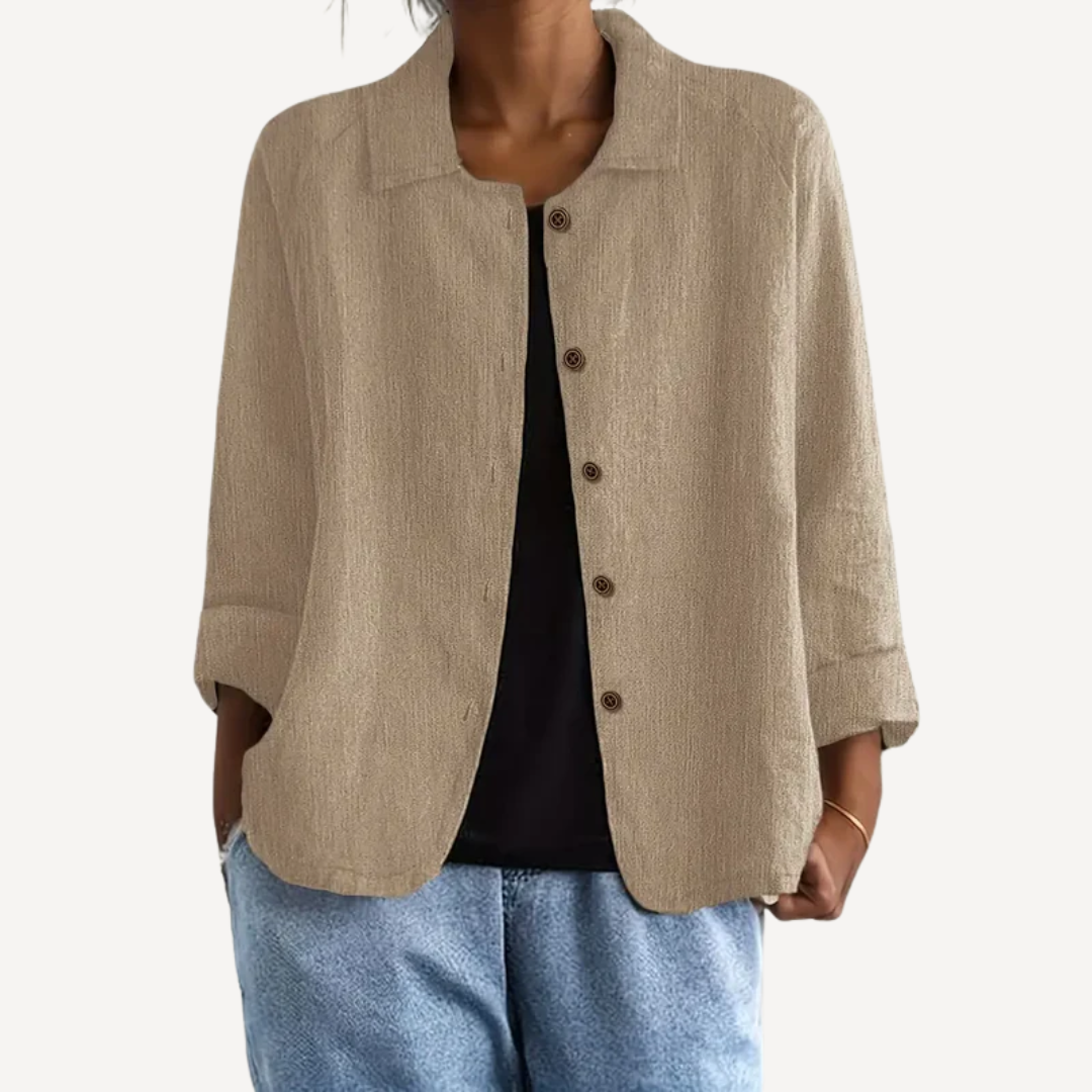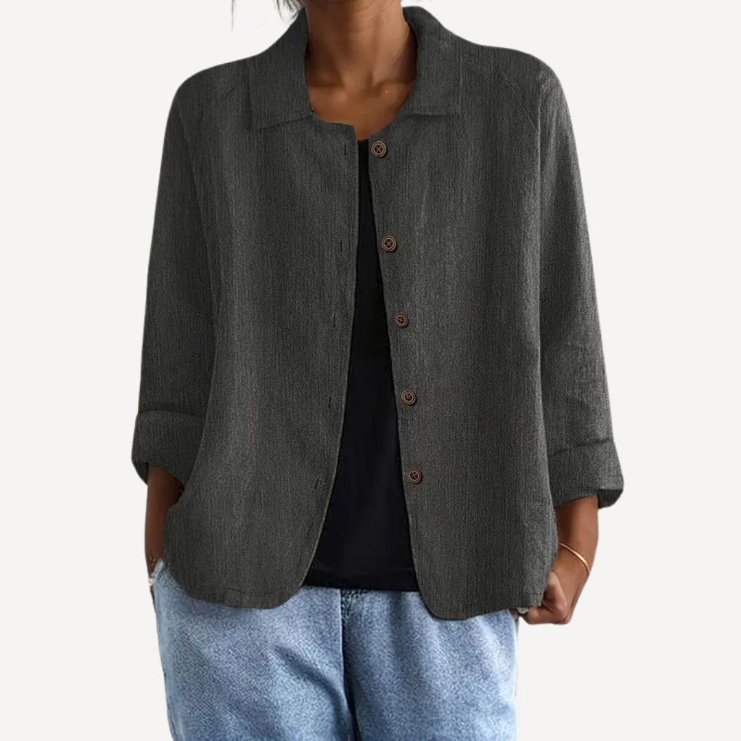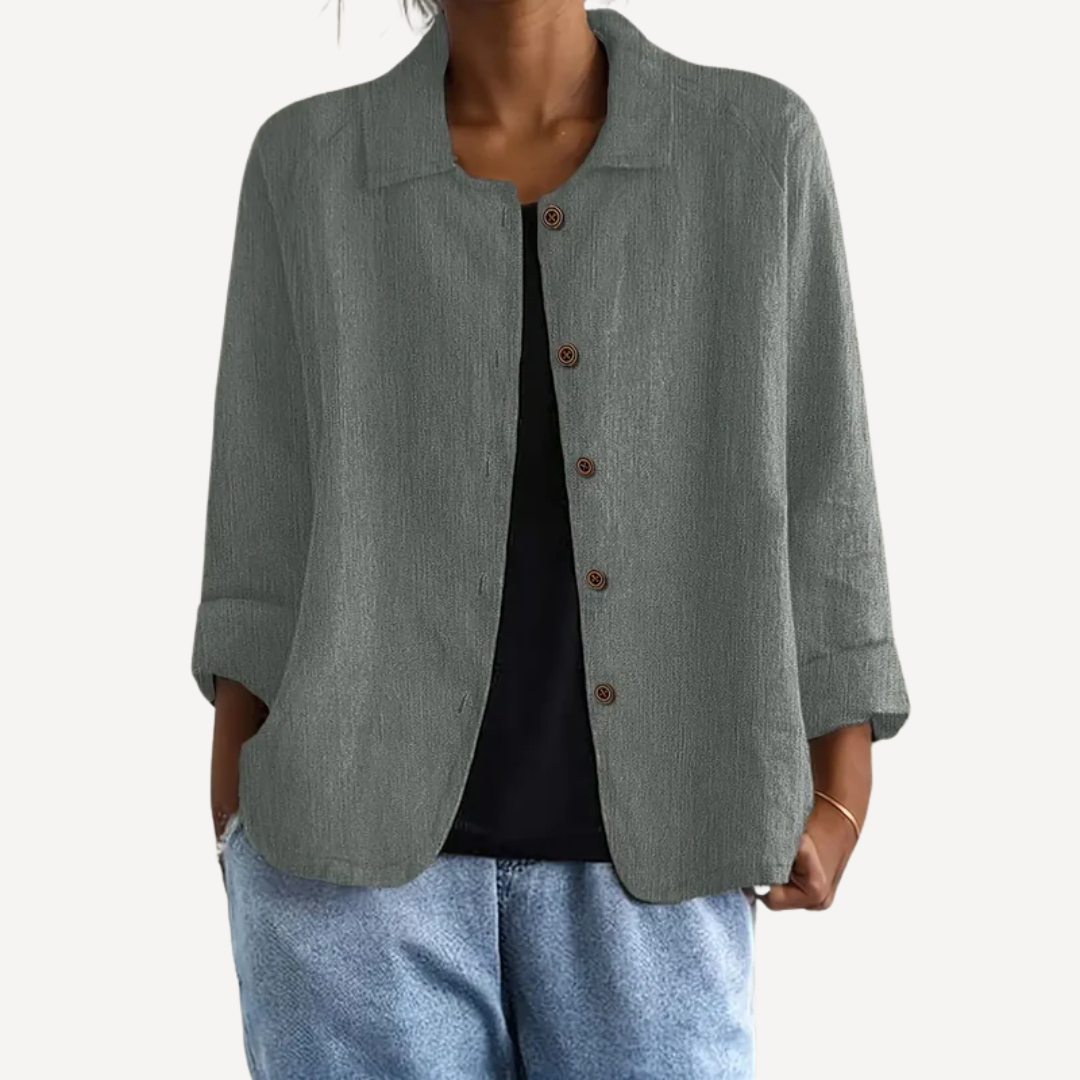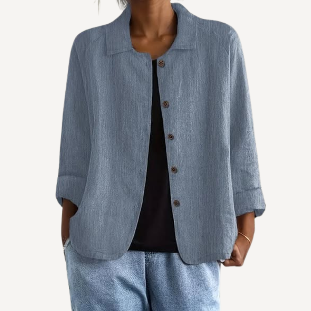 Conoce la blusa Sofía™ | Clásica y Ligera, diseñada para esos días de transición: el sol asoma, pero el viento todavía refresca. Esta prenda se siente tan ligera como una camisa, pero te ofrece el calor justo que necesitas. Una capa elegante y práctica en la que siempre podrás confiar.